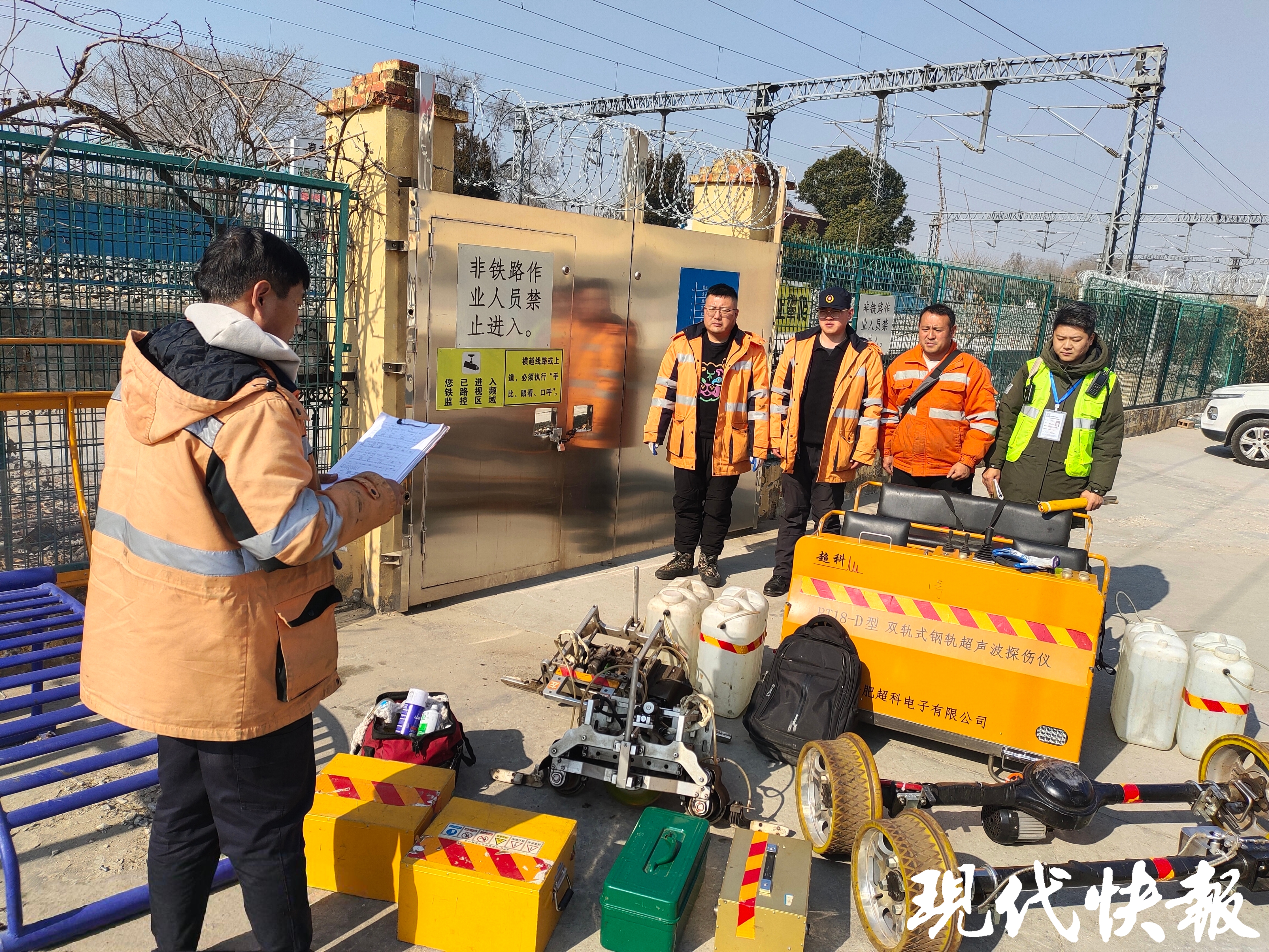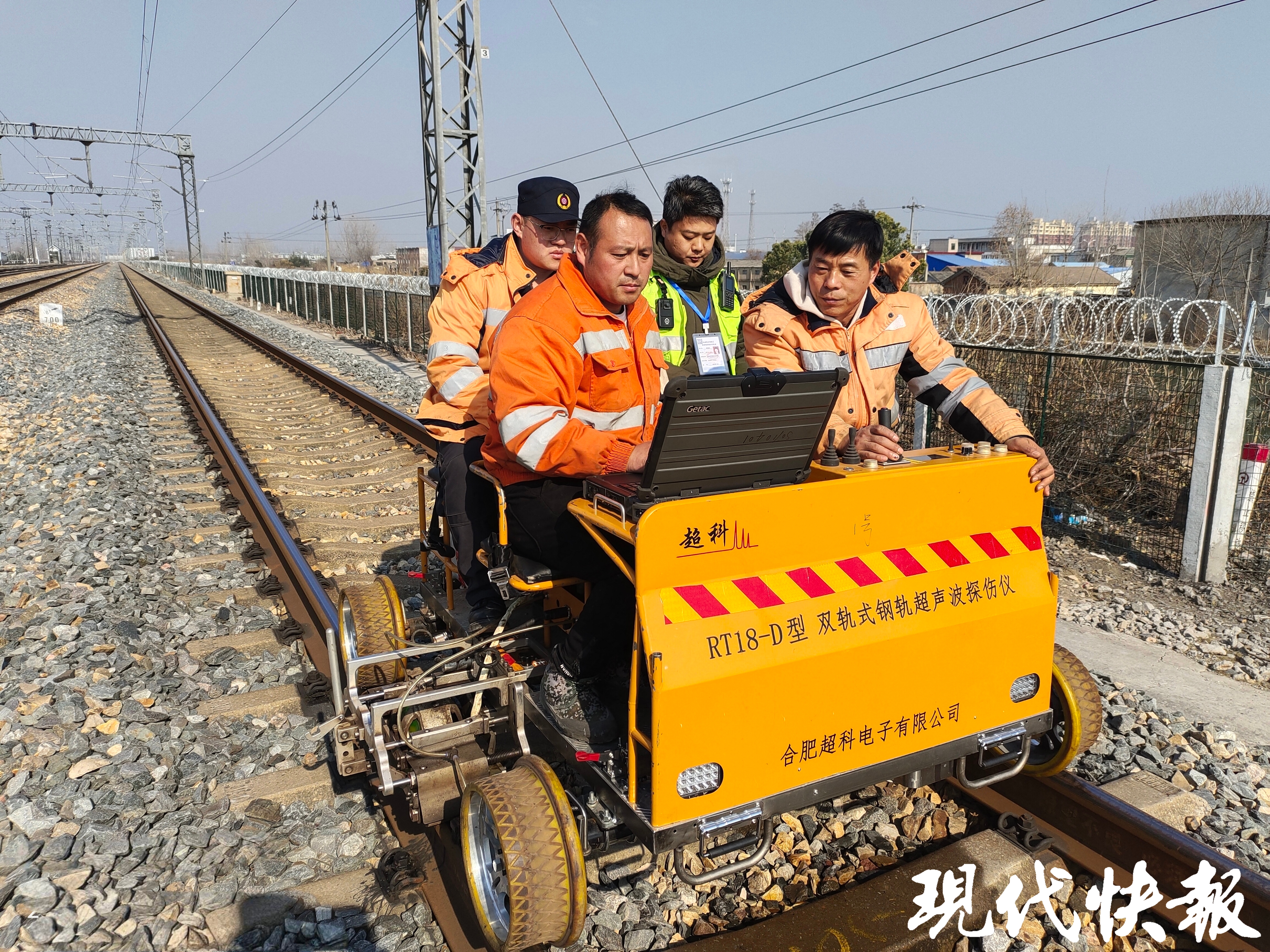 现代快报记者了解到,当天采用双轨探伤车对京沪线连城站至唐南集站间上下行线路进行钢轨探伤作业。