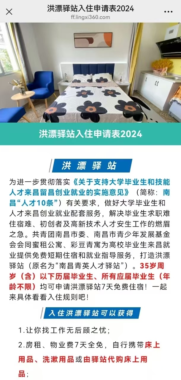 住房租赁企业共提供了2000多套房屋,某“洪漂驿站”运营负责人李城表示,想办理的朋友可以在微信搜索“南昌青年之声”申请。