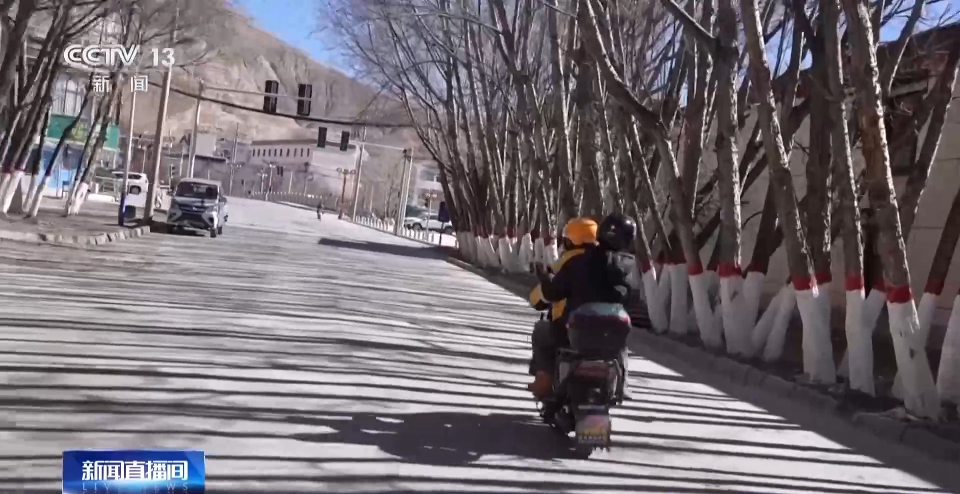 来到定日县城,比起记者几天前刚到这里的时候,街上的车流明显多了起来,街边也出现了外卖小哥的身影。