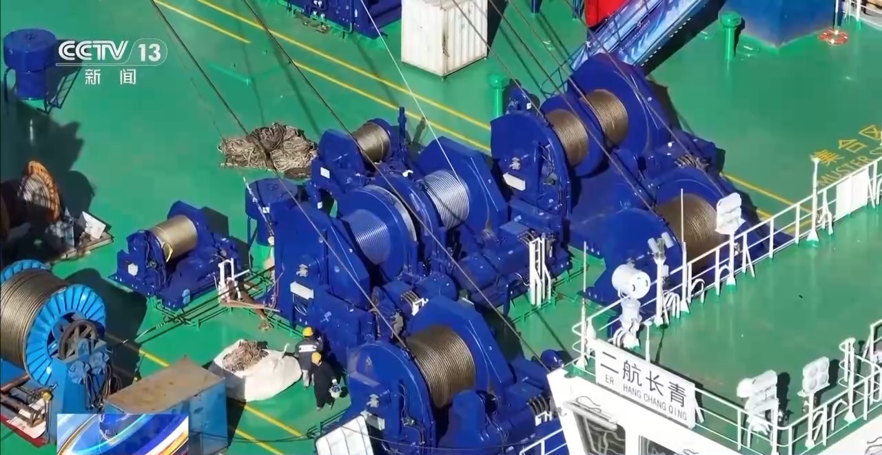 总台记者吴睿:我们脚下的“二航长青”打桩能力世界第一,可以打下直径7米、长度120米、重量达到700吨的桩基,可以在海底打下无数根超级“定海神针”。