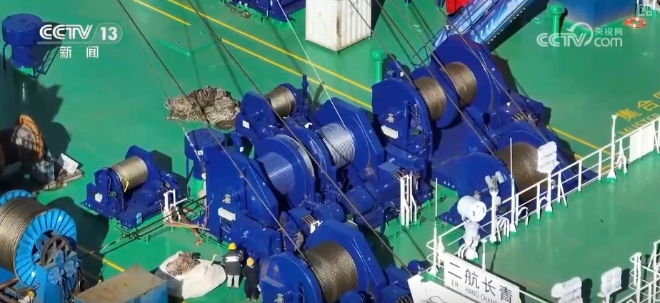 “二航长青”轮的尺度在世界上首屈一指,超大的船体尺寸带来了超强的抗风浪能力。此外,甲板上好安装有10台100吨拉力的定位绞车,组成了一个打桩定位系统,在北斗卫星的帮助下,“二航长青”能够在深远海实现厘米级的定位精度。