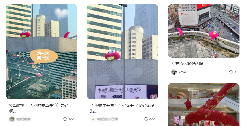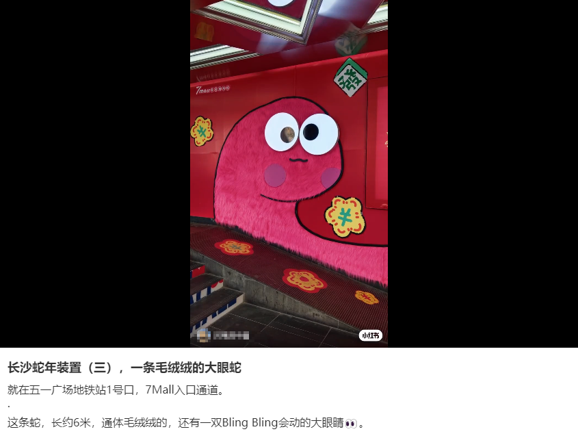 目前,长沙多处“上新”了蛇年装置,北辰三角洲、方圆荟世纪城、步步高星城天地、龙湖芙蓉天街等商场,还有五一广场地铁站,均有相关摆饰。