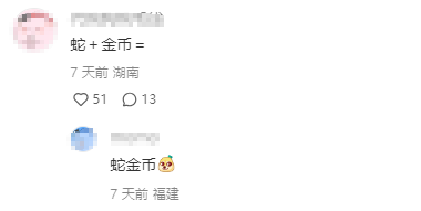 还有人发现,蛇头衔着金币,“蛇+金币=蛇金币”?谐音梗扣分!