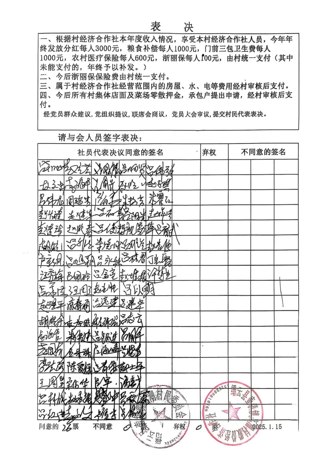 “一致同意,全票通过!”1月15日,缙云县壶镇镇高潮村召开村民代表大会,表决通过了今年的“年终奖”分配方案——每人5600元。这也是高潮村连续第26年给村民发“年终奖”。