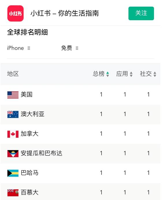 据锦观新闻报道,记者查询专业移动推广数据分析平台发现,在海外 appstore 下载榜 " 小红书 " 已在 43 国登顶,在 72 国排名前三。