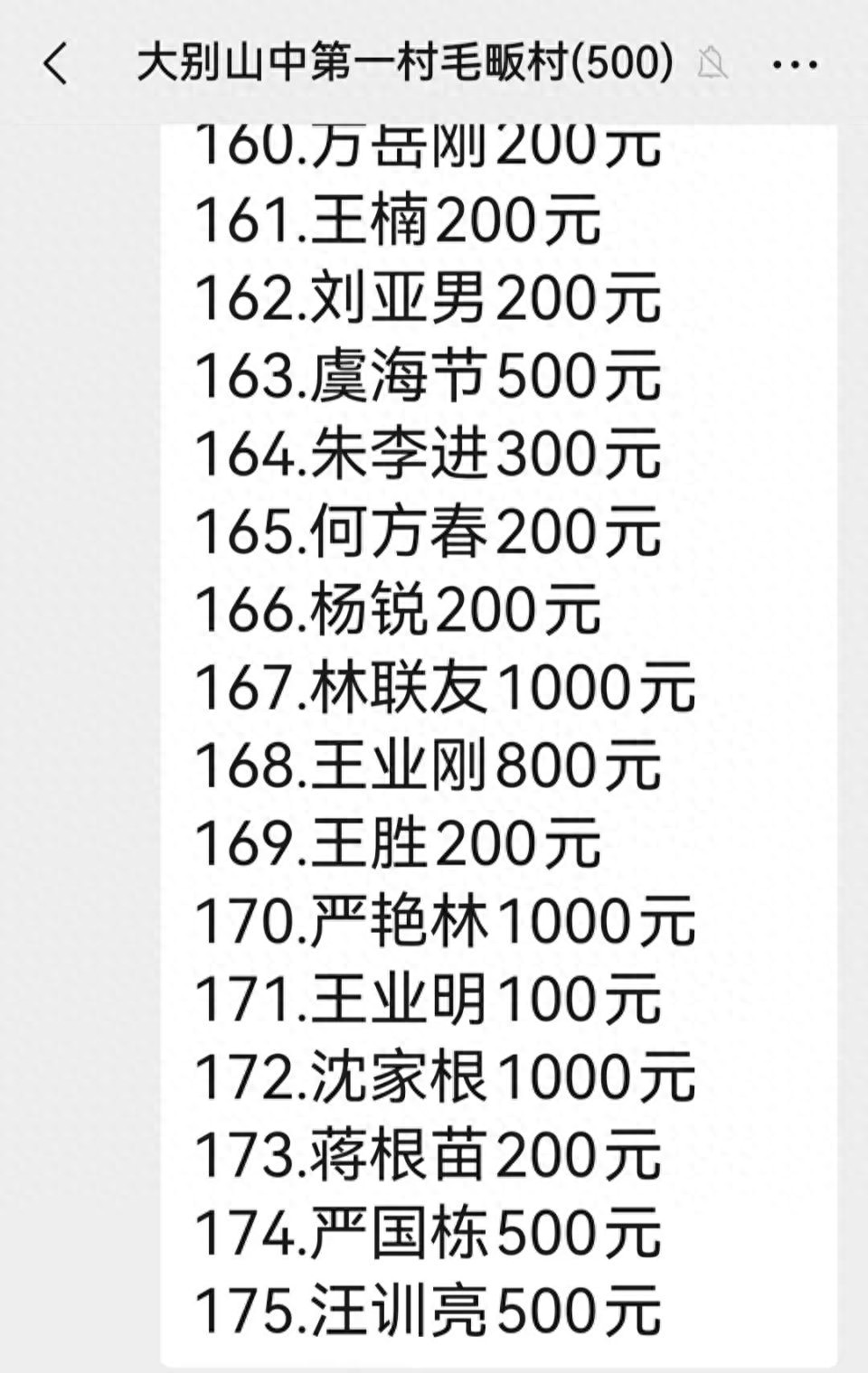 1月9日,一场无声的捐款接力,在安徽岳西县毛畈村村民微信群里自发上演着,群里的名单和金额不断滚动着,100、200,500、800,1000……