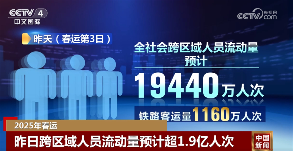 央视网消息:1月17日是春运第4天,1月16日,全社会跨区域人员流动量预计超1.9亿人次。这几天,人员流动量持续攀升,交通等部门采取多项措施,保障群众顺畅出行,交通出行平稳有序。