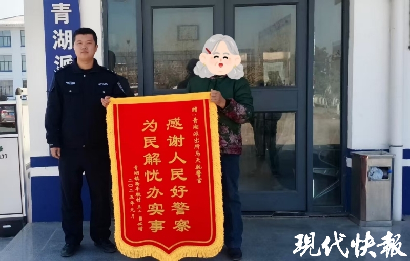 “我就要去南京和儿子儿媳妇见面了,真的很激动,非常感谢你们!”出发去南京前,王大妈专门制作一面锦旗送到民警手中表示感谢。