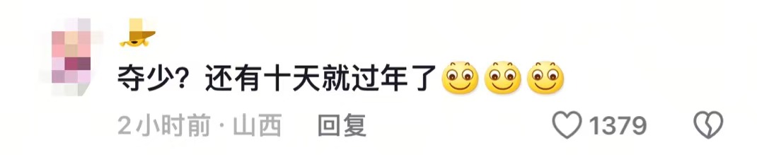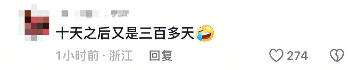在评论区里,网友们似乎还没发现春节已近在眼前,还在感慨时间竟然过得这么快。“硬生生从300多天看到第10天”“十天后又是三百多天”“就十天了?我还没逆袭呢”,感觉昨天还在2024春节。