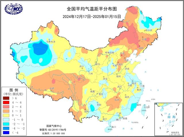 据国家气候中心资料,入冬以来(2024年12月1日至2025年1月5日),全国平均气温(-2.9℃)较常年同期偏高0.3℃,其中东北大部、华北东部、西南等地偏高1℃以上。