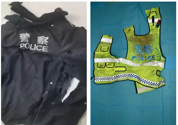 1月12日,记者在殡仪馆见到了康心之生前穿的警服与反光背心。因为被卷入车底,他的警服多处被磨烂、撕裂,反光背心也是如此上面一大片血迹清晰可见。