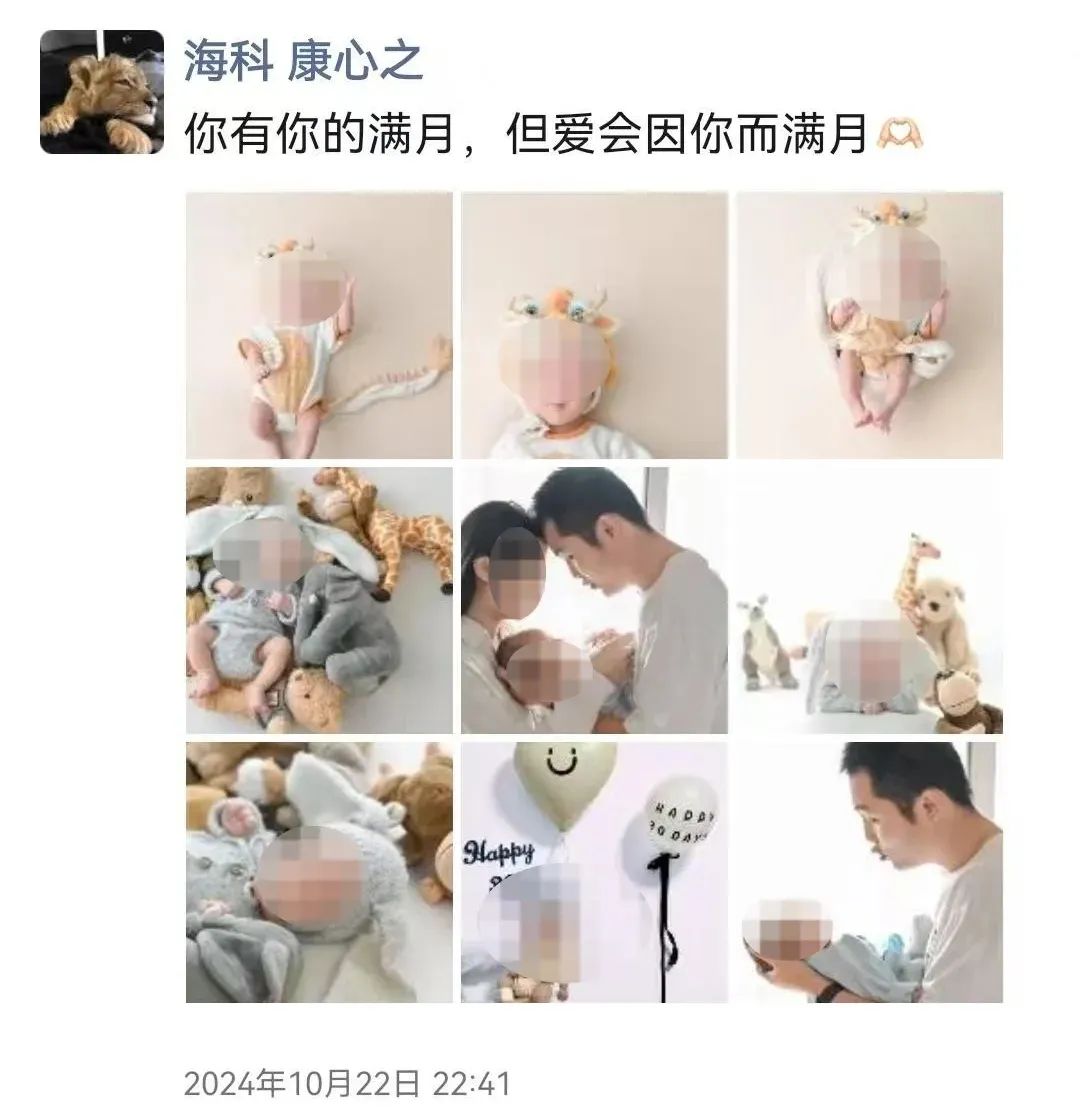 谁也没想到,康心之没能等来这一天,他的朋友圈也停留在了2024年10月22日。那天,他的娃娃刚刚满月,平时不怎么发朋友圈的他专门发了一条,配文“你有你的满月,但爱会因你而满月”。