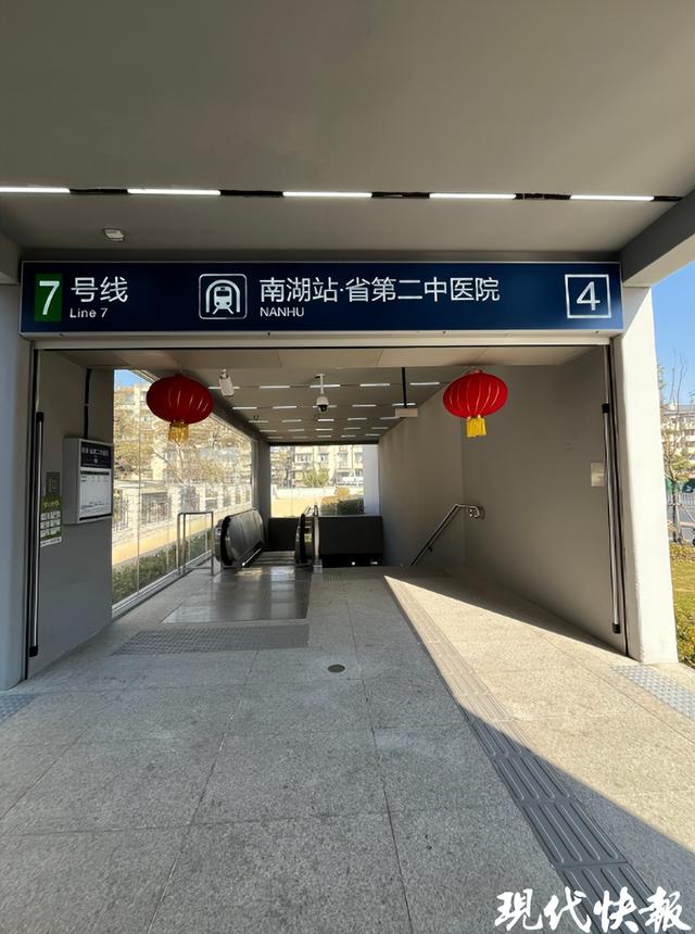 地铁7号线南湖站位于集庆门大街与南湖路交叉路口南侧、南湖街道区划内,周边为南湖大型居民集聚居住区域。同时,旁边还有江苏省第二中医药,往来就医的市民也很多。最近,有市民反映,南湖站目前开放了两个出口,一个2号口,一个4号口,其中4号口离医院更近,但4号口目前只有上行的扶梯和步行楼梯,没有下行的扶梯。如果是来看病的或者老年人,下行走楼梯时,会不太方便。