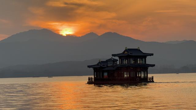 周五的傍晚,夕阳的余晖开始温柔地洒落在西湖的湖面上,像是为这片澄澈的水域铺上了一层金色的薄纱。