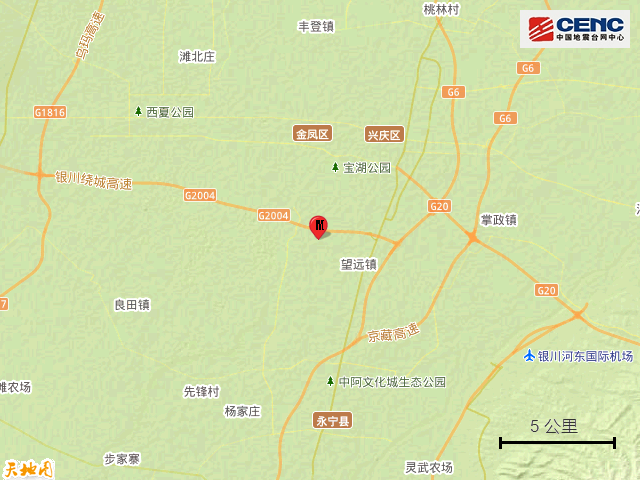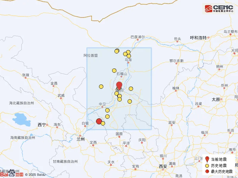 1月18日,宁夏银川相继发生2.7级、3.2级地震。