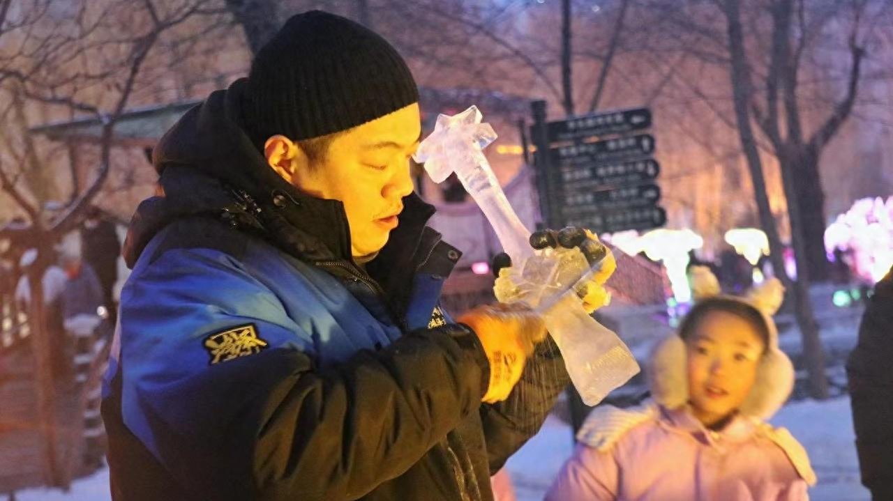 陈荣欣:冰雪游热度下,哈尔滨每年建造更多景区扩大游客承载力,冰雕师的缺口逐年递增。每年哈尔滨“冰雪大世界”有数万人赶工,但很多只能称“冰建师”,真正冰雕师需要会画图纸,惊细雕刻,确实很少。