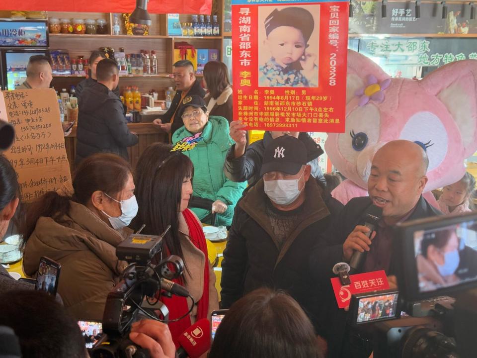曾悬赏百万寻子的解克锋当天也来到邵东,见证刘佳佳和亲人团圆,“去年12月的时候佳佳找到了我,我建议她可以在网上发布视频,当时我就告诉她,如果哪天找到亲人了,一定要告诉我,我来见证她的团圆。”1月14日,得知DNA比对结果后,刘佳佳也第一时间告诉了解克锋,“我当时就说了,肯定会过来,也是很开心看到她和家人团聚。”