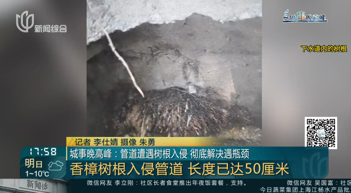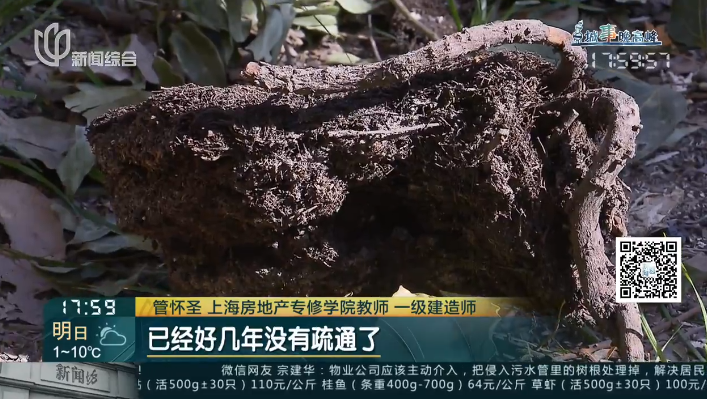 同在现场的行业专家告诉记者,按行业规定,物业每年至少应对公共管道进行一次疏通,但从被清理出的树木根系来看,物业公司可能已经长时间没有疏通公共管道了。