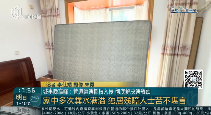 严女士说,她的妹妹今年四十多岁,是一位聋哑人,视力也不好,平时独居在浦东新区航头镇聚航苑已十多年。妹妹家中的污水不断从厕所的地漏处冒出,一路满溢至卧室,地面污水横流,连床垫都遭到了污染,无法使用。