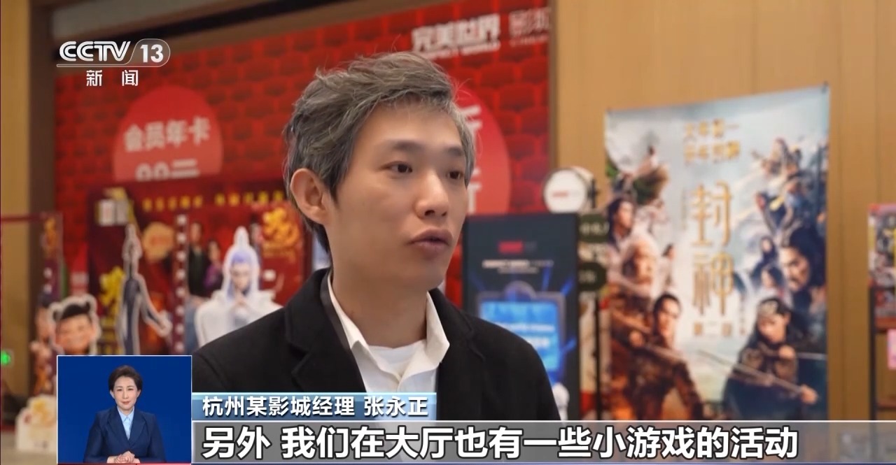 浙江杭州某影城经理 张永正:目前的(购票)人数还在持续上涨。另外我们在大厅也有一些小游戏的活动,带动气氛。
