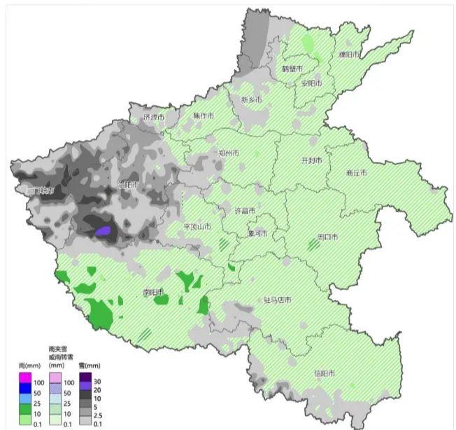 25日,西部、北部有小到中雪、局部大到暴雪;东部、南部有小到中雨转雨夹雪;其他县市雨夹雪转小到中雪、局部中到大雪。