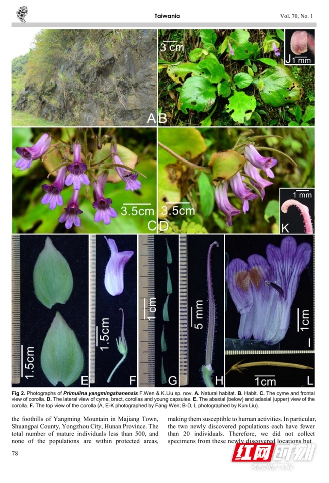红网时刻新闻1月21日讯(记者李璐通讯员陈凯军)近日,记者从湖南省林业局获悉,科研人员在湖南省永州市双牌县发现一植物新种——阳明山报春苣苔,这一研究成果近日发表在知名植物分类学期刊《Taiwania》上。