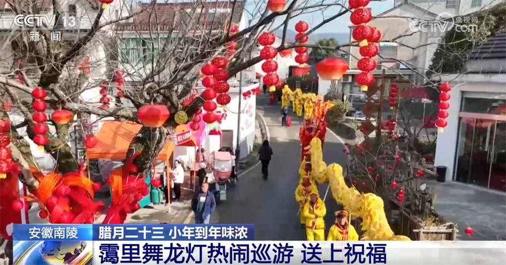 在安徽南陵蔼里村,腊月二十三,那里的村民们聚在一起看演出、品美食,还有寓意吉祥的舞龙队在村子里巡游,现场非常热闹。来看总台记者稍早前发回的报道。