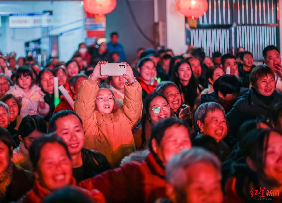 春节将至,2025年1月21日晚上7时,一场由村民自编自导自演的春节联欢晚会在四川自贡市贡井区长土街道沙罗村村委会文化广场热闹开演,吸引了当地及周边上千名群众赶来观看。当天的晚会共有12个节目,包含歌曲、舞蹈、小品、民俗展演等,由当地100余名村民出演,其中年龄最小的仅5岁,最大的70多岁。