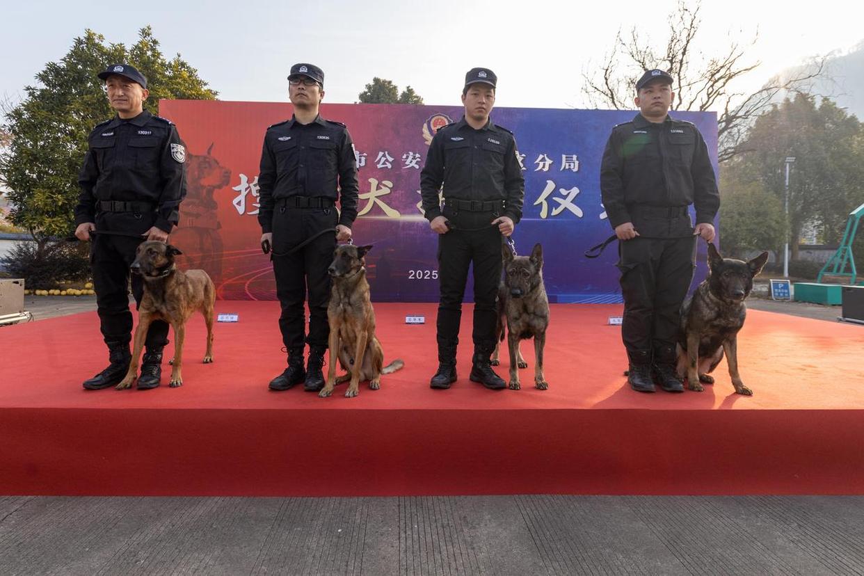 1月22日,杭州临安区公安分局在龙岗训练基地举行了搜救犬捐赠仪式。此次捐赠的4只搜救犬年龄在1岁左右,两公两母,分别是2只马里努阿犬、1只德国牧羊犬和1只昆明犬。它们聪明伶俐、肌肉发达,运动能力强、服从性高,在专业训导员的带领下已受训一年有余,擅长山地救援。