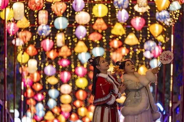 1月22日,“金蛇贺岁点靓姜城”新春灯会在江苏省泰州市姜堰区人民公园正式亮灯。这是游客在赏灯。汤德宏/摄(新华社发)