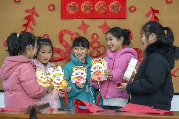 1月22日,安徽省芜湖市繁昌区繁阳镇城关一小剪纸社团的学生在参加“巧手剪纸迎小年文化传承年味浓”主题剪纸活动。肖本祥/摄(新华社发)
