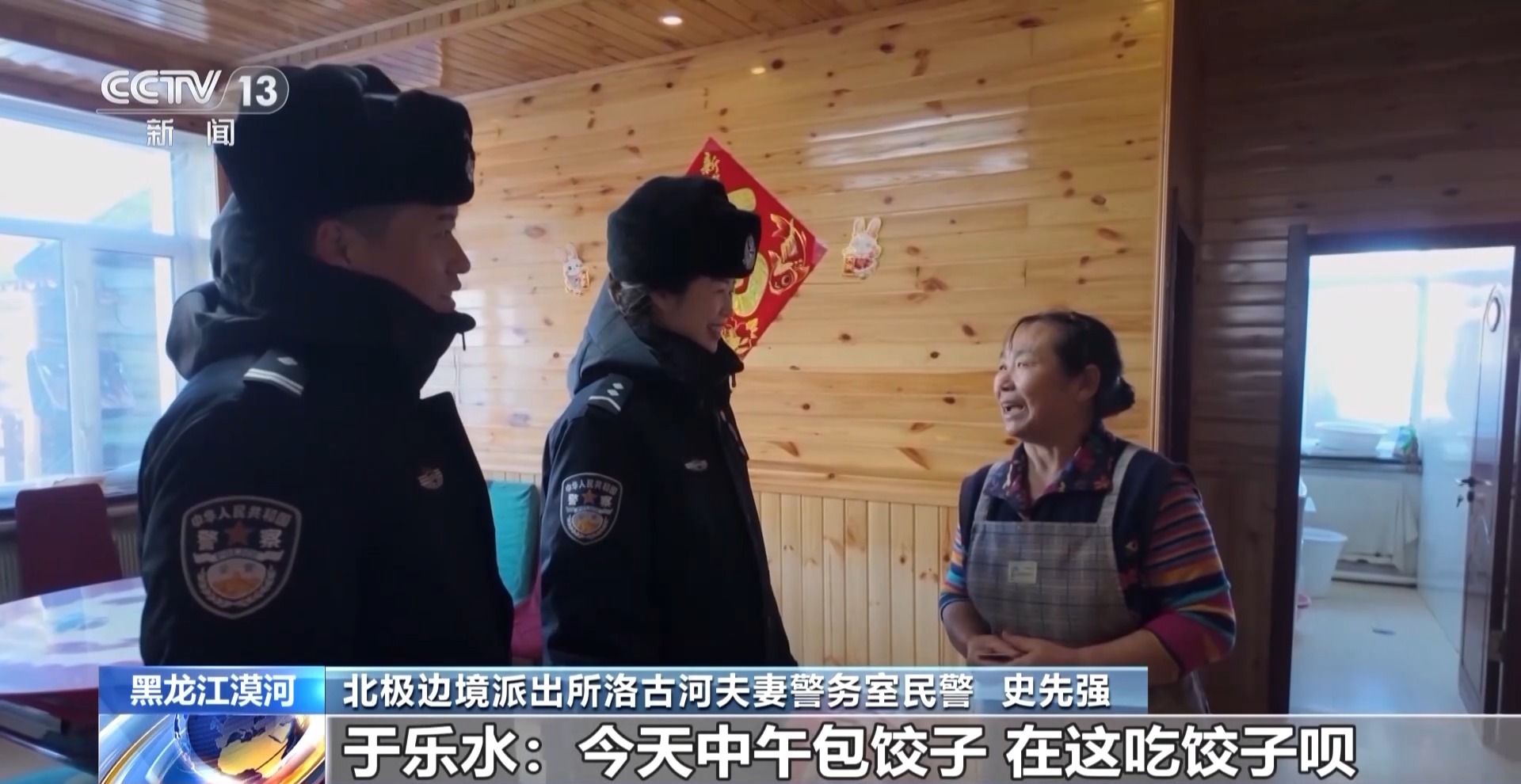 北极边境派出所洛古河夫妻警务室辅警 沈欣:洛古河村的民风特别淳朴,我们跟村民相处得像一家人一样。一开始可能我们两个年轻人刚来,他们可能也不习惯,可能觉得两个年轻人能在村里头长待吗,后来也是经过我俩入户,相处得像一家人一样。他们都把我们当成自己的孩子,谁家做好吃的了,包饺子包包子,都会喊我们一起去,我们也慢慢地融入了进来。