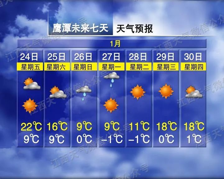 赣北和赣中的西部地区多云间阴天,局部地区有小雨,全省其他地区多云。明天最低温度:全省9~11℃,山区7~8℃;