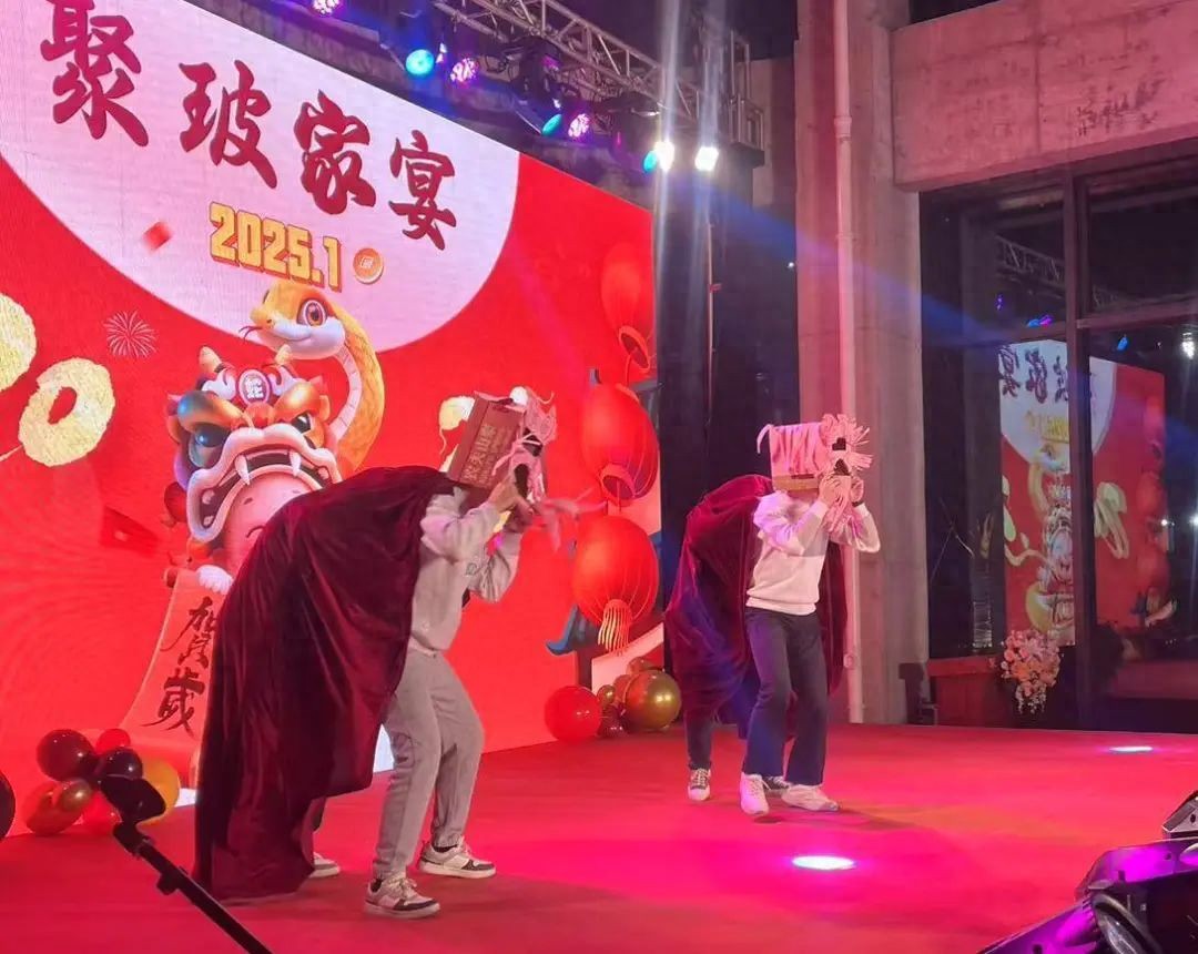 小吴是公司前端开发程序员,恰好经历了两种截然不同的年会。“去年是在酒店办的,比较常规,大家印象也不深。今年改成这种农村大席的形式,大家都觉得好吃又好玩。”