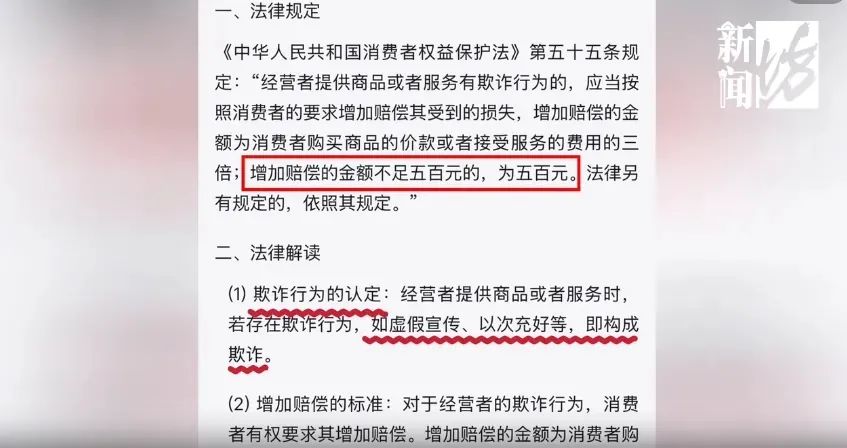 针对夏先生所提出的退一赔三,以及依照消费总价不足500元的按500元赔付的诉求,律师表示,法律设置“退一赔三”的本意,是针对商家的欺诈行为。如果商家以次充好,明知商品有问题而故意销售,那么消费者有权要求“退一赔三”,而这里可能不适用。