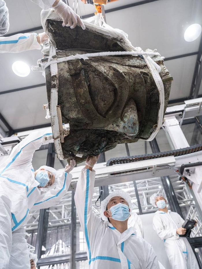 提取三号祭祀坑青铜大面具 图据四川省文物考古研究院