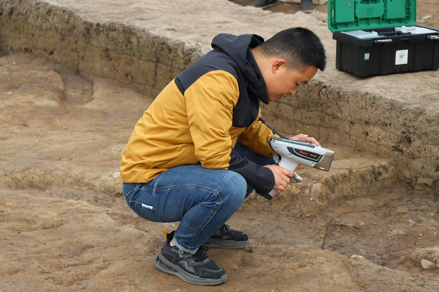 文物保护工作者在玉石器作坊区域开展检测工作 图据四川省文物考古研究院