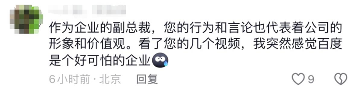因璩静在视频中谈的内容过于激烈而引发关注,外界对于视频内容的讨论,进一步上升至百度的价值观。