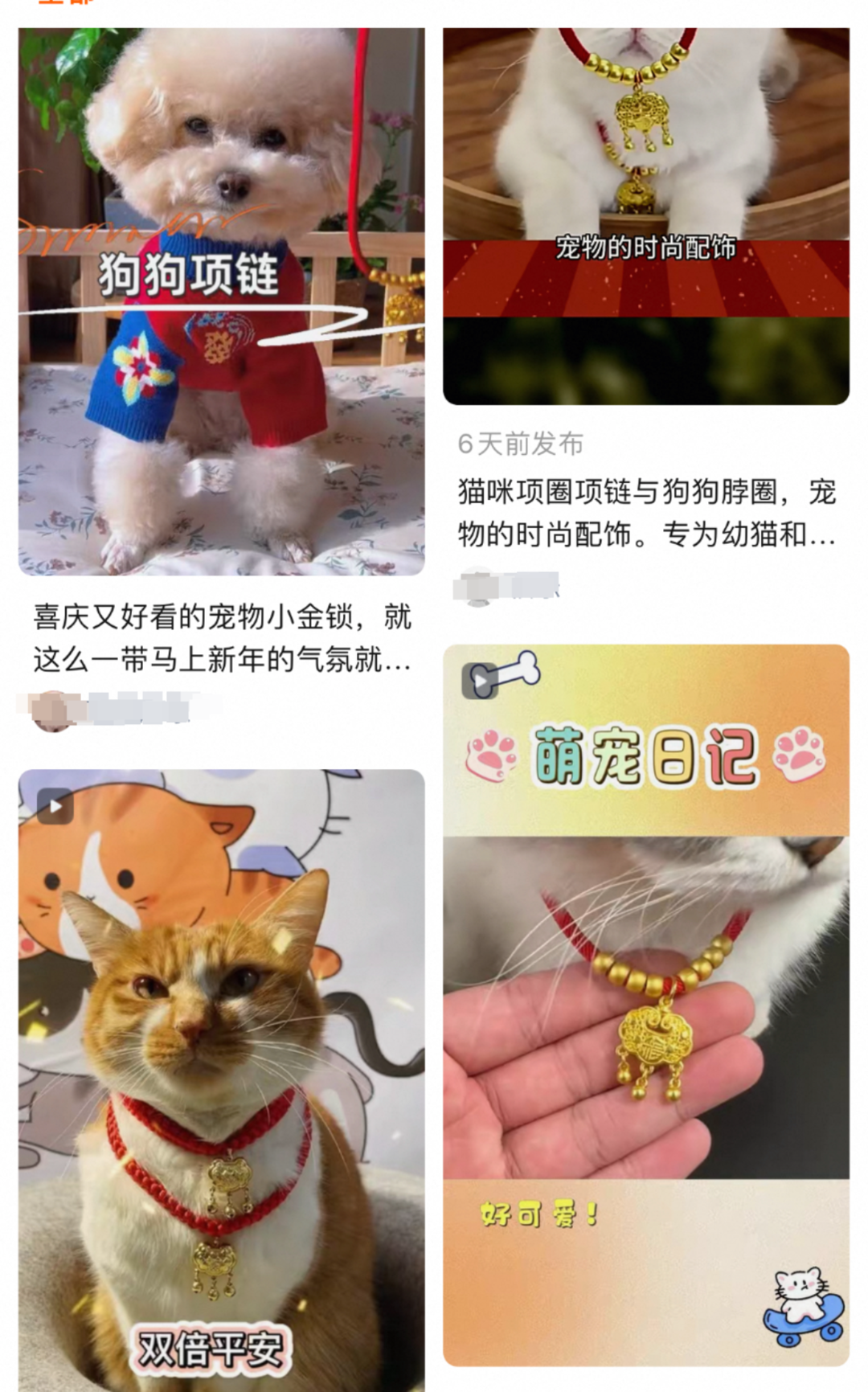 春节的脚步日益临近,人们在精心筹备过年的同时,家中的“毛孩子”也迎来了属于它们的热闹春节。近年来,宠物佩戴首饰逐渐成为养宠人追求的新时髦,带着手工打造的古法黄金、仿黄金长命锁、平安扣,在网络短视频的带动下,养宠人纷纷让“毛孩子”开启穿金戴银的模式,穿戴好后,不少铲屎官们还为自家毛孩子定制了风格别致的宠物写真。