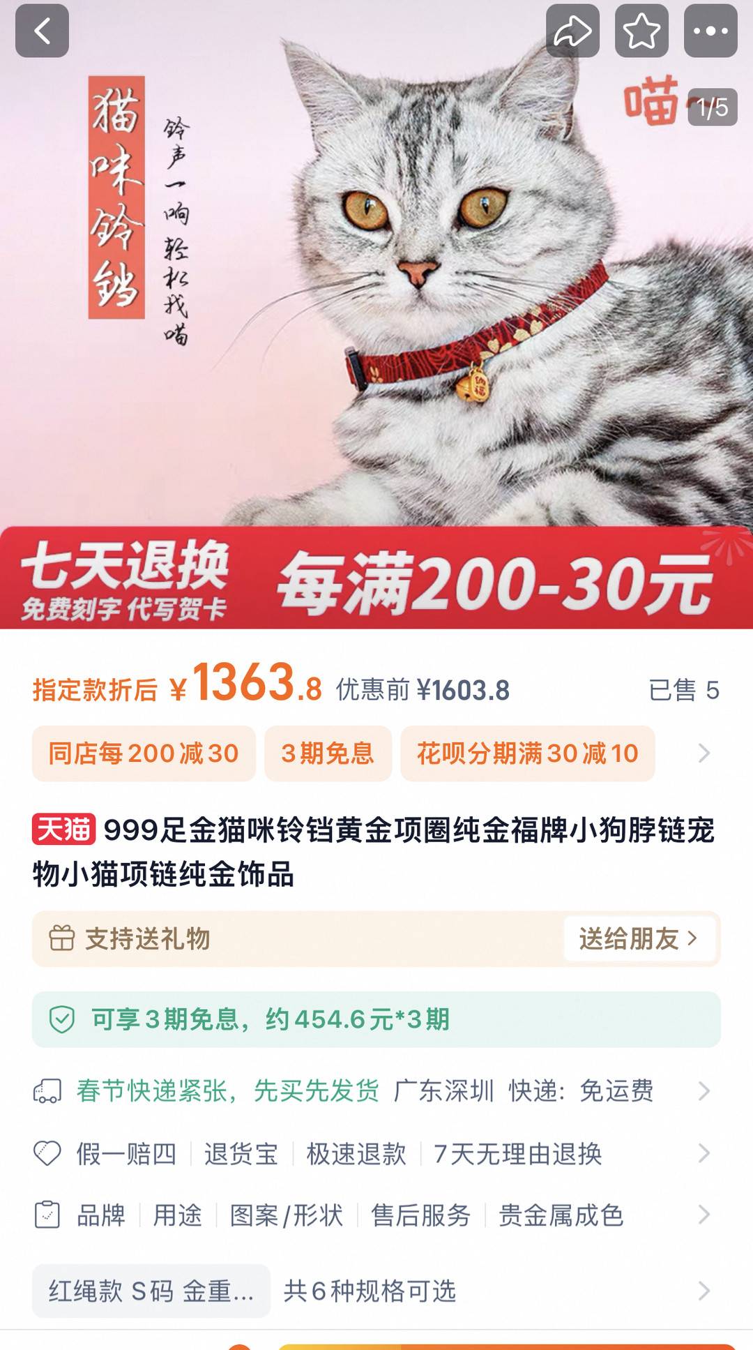 “我家亲戚就是做黄金生意的,因为此前每年过年都会给自己宠物购买饰品,今年看到各种宠物博主给狗狗佩戴平安锁,就想给自己新养的柯基定制一个小平安锁。”刘女士告诉记者,她刚给自家的小狗定制了一个黄金的平安锁,价格在8000元左右。“一方面,看到它戴着金饰,我也会很开心、另一方面,相比之前大几百买一些用完就丢的饰品,现在狗狗的平安锁也算是一种变相的存钱或投资。”