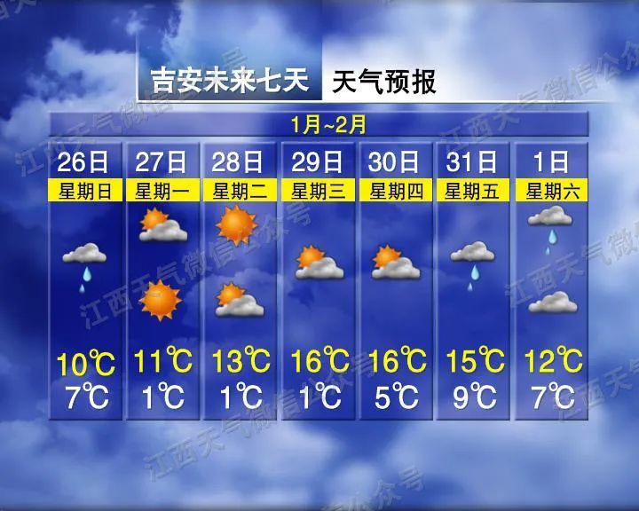 江西省气象台2025年01月25日08时37分发布寒潮蓝色预警信号:预计未来48小时内,全省气温将下降9℃~12℃,27日早晨最低气温赣北、赣中和赣南北部可降至零下2℃~0℃ ,山区零下4℃ ,赣南南部可降至0℃~2℃;偏北风力加大,25日夜间至26日江湖水面、平原河谷和高海拔山区偏北阵风可达7级,请注意防范。