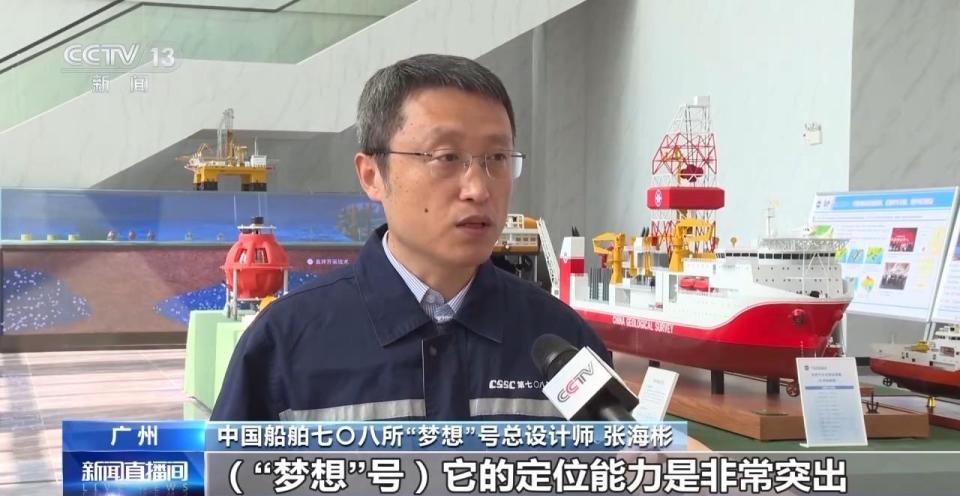 中国船舶七〇八所“梦想”号总设计师 张海彬:“梦想”号的定位能力是非常的突出,可以在9级风下360度方向保持船舶位置,在12级台风下有利艏向保持船舶位置,最大作业海况比国外最先进的大洋钻探船提升了40%以上。
