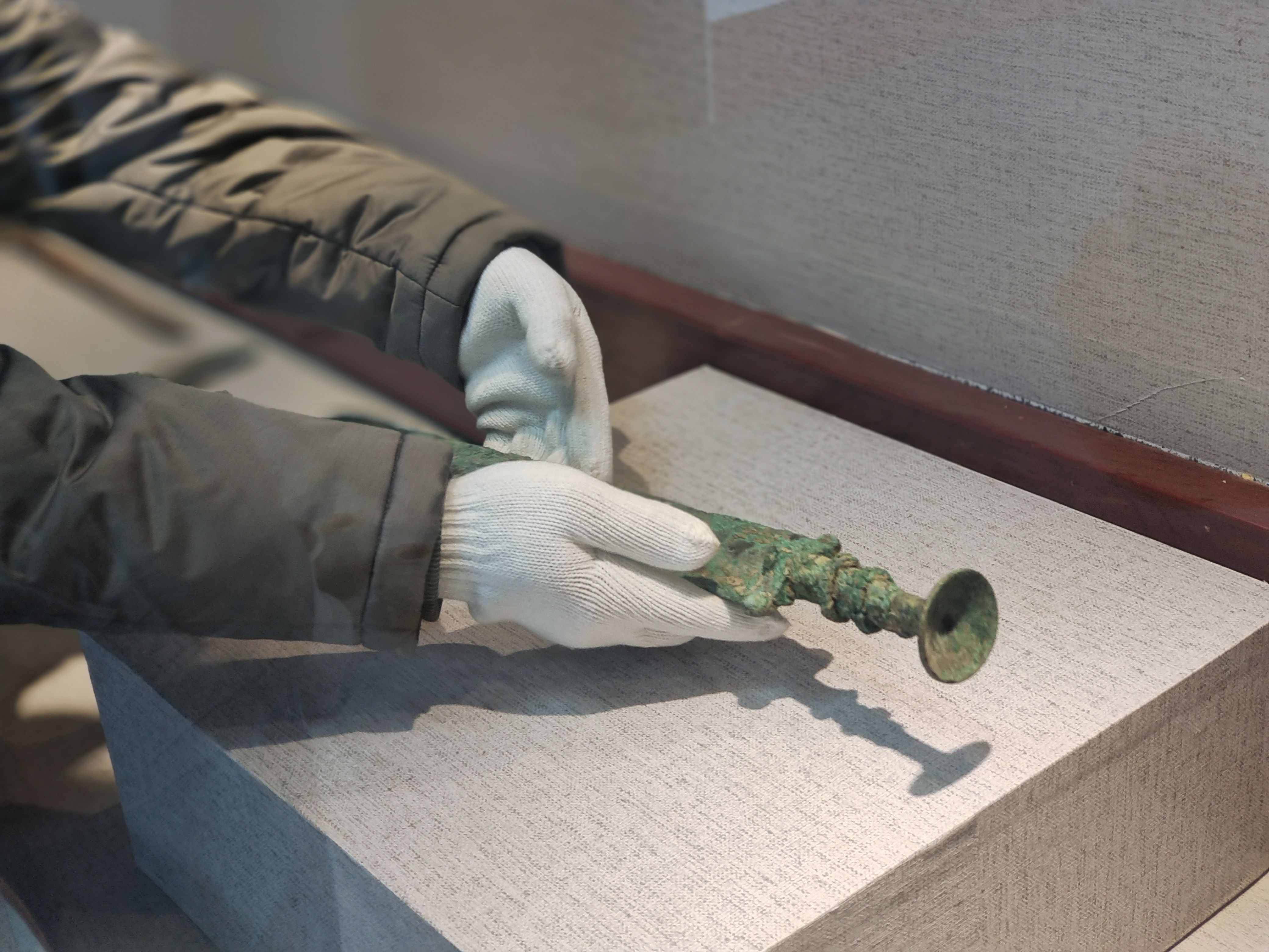展柜被打开,工作人员从库房中拿出文物,分门别类,小心翼翼,将不同类型的文物摆放到展台之上。