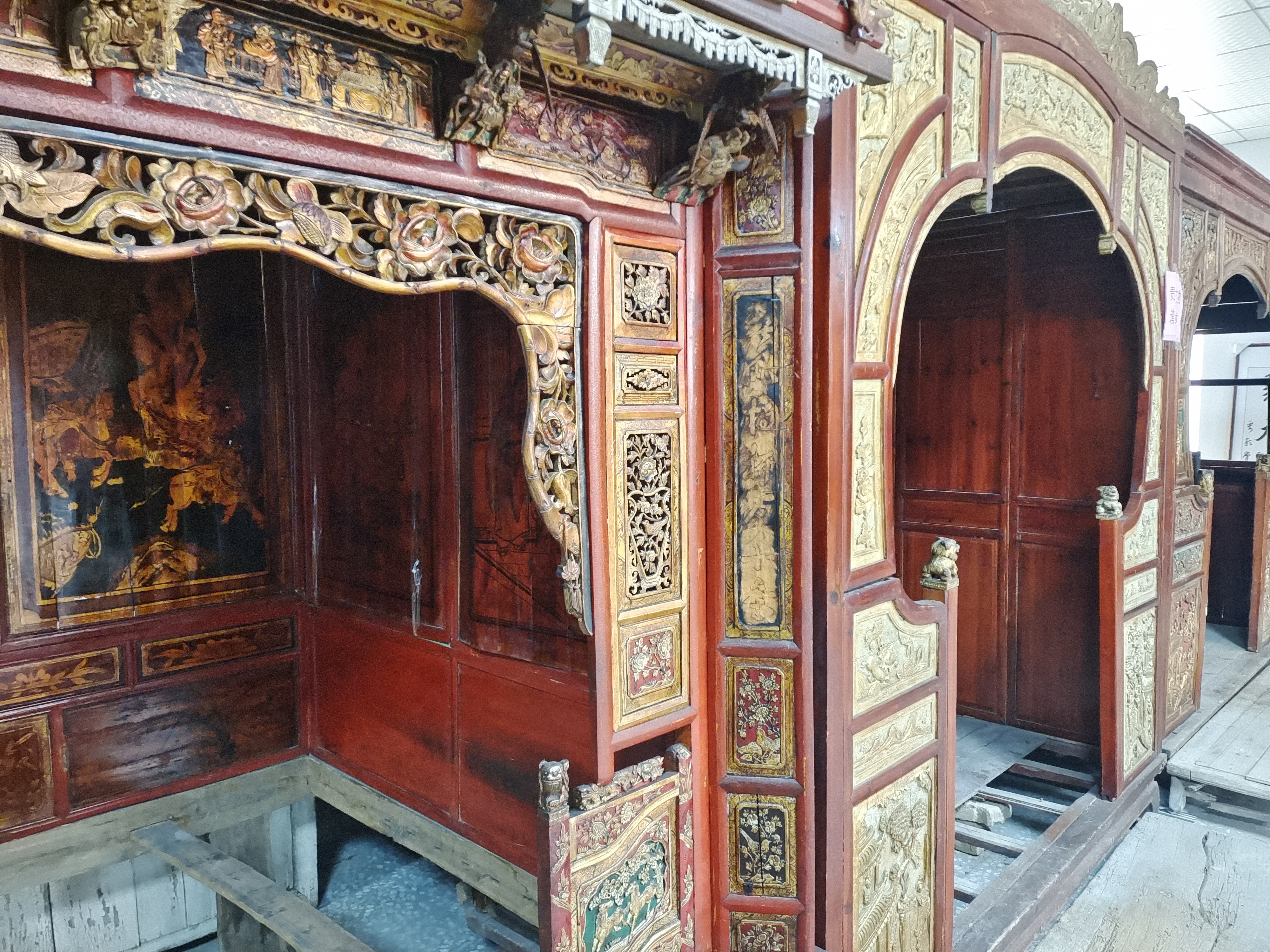 在博物馆所在的院子内,随处可见从各地搜集的各种文物,不同年代的盆槽瓶罐,不同形制的门前石,还有太平车、织布机等。