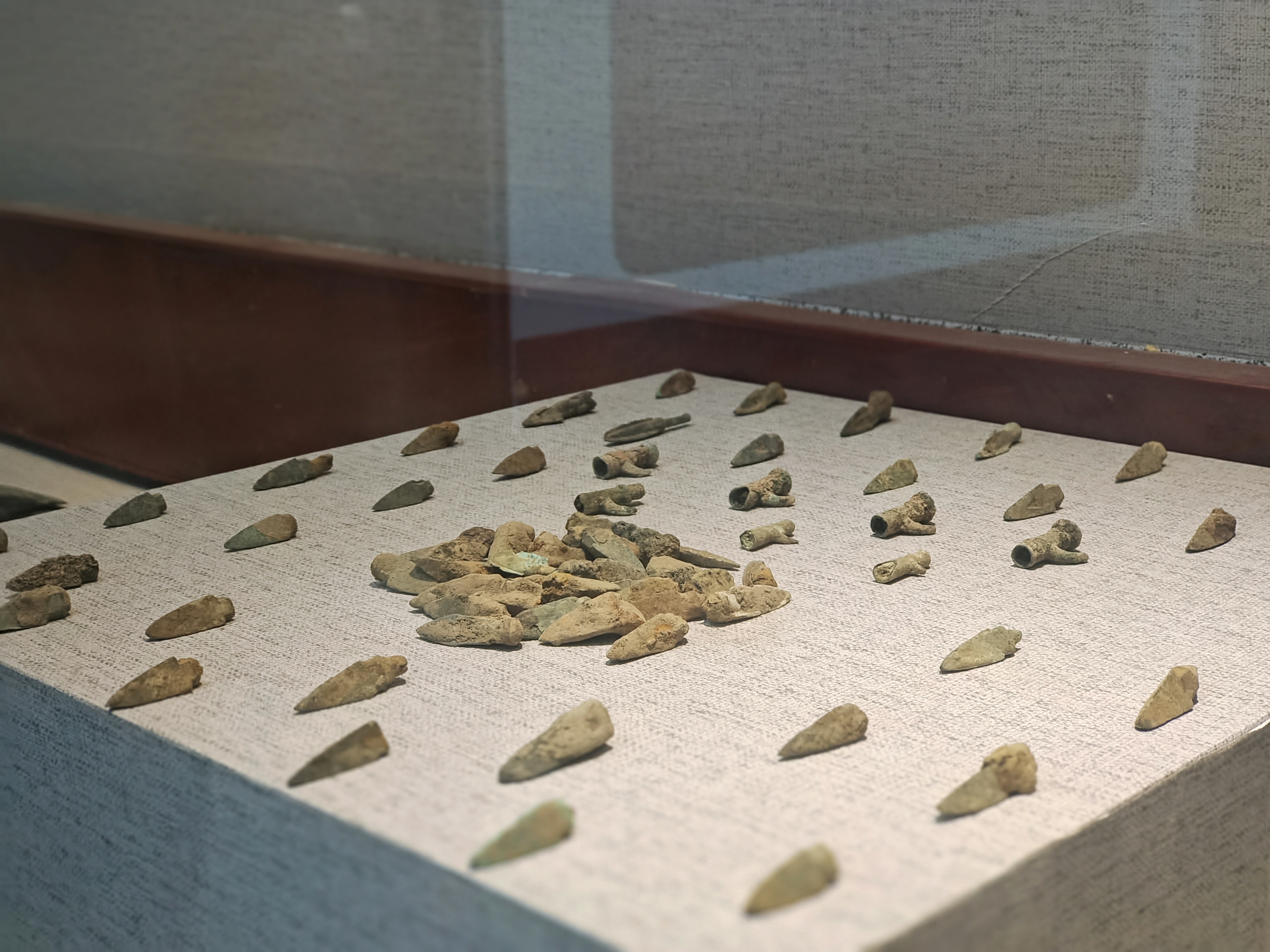 展柜内的箭镞(收集于官渡桥村及附近村庄)。