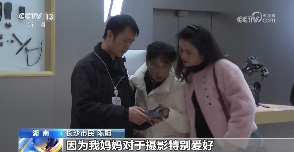 长沙市民陈蔚:我妈妈特别爱摄影,她觉得用无人机可以拍得更漂亮一些。在这里偷偷讲一句,今天不买,偷偷地买一个回家给她一个惊喜。