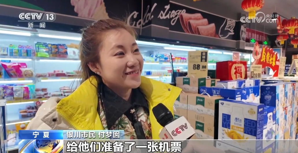 银川市民付梦囡:给他们准备了一张机票。父母上年纪了,怕花钱,现在我们的日子好过了,希望他们能出去看一看祖国的大好河山。