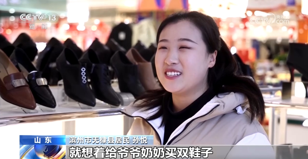 滨州市无棣县居民孙悦:马上快过年了,就想着给爷爷奶奶买双鞋子,再买身衣服。这是我毕业后的第一份工作,也是发的第一份工资。
