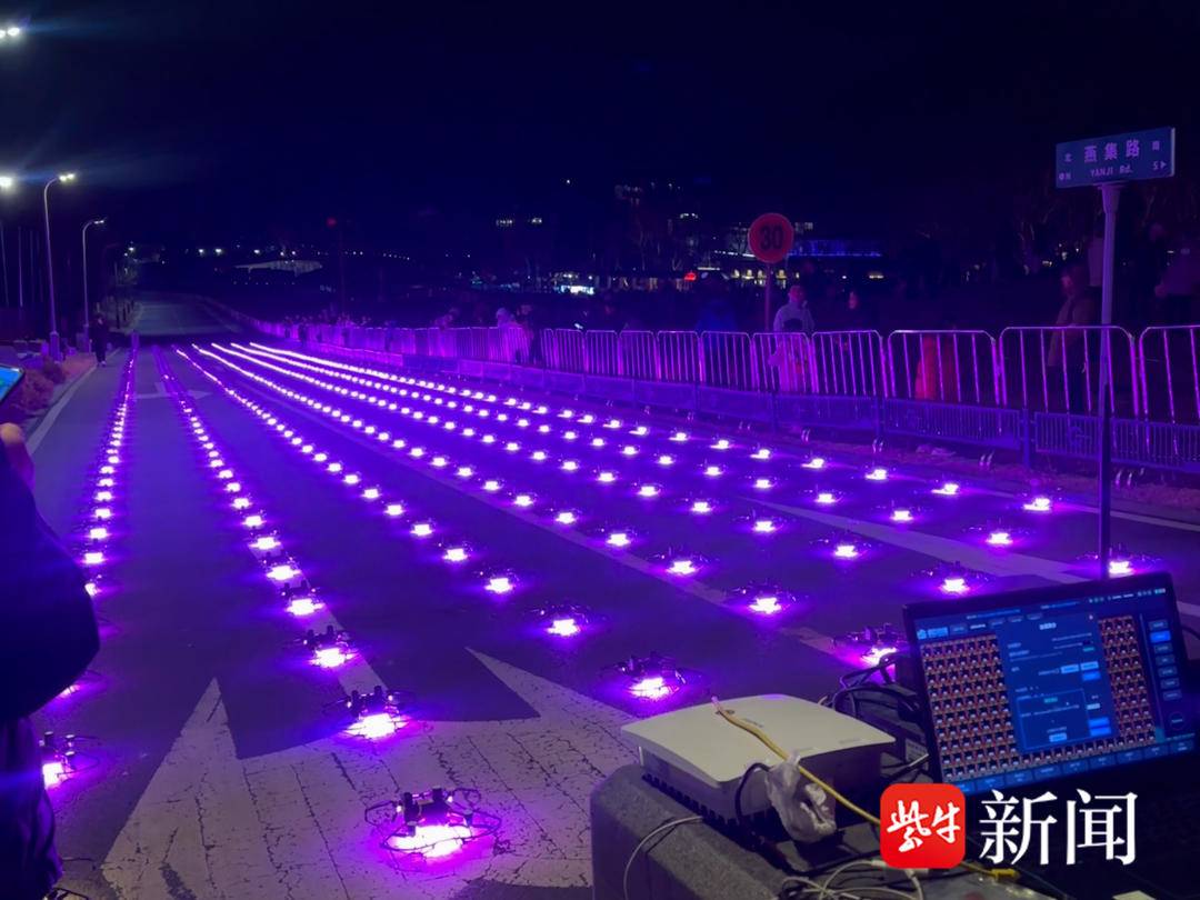 “科技年味”背后藏着硬功夫。记者在演出区域一侧看到,夜幕还未降临,500架无人机就已提前在地面上排列整齐,工作人员正挨个安装电池、检查彩灯等。此次无人机团队负责人易经理向记者介绍了工作流程:“我们根据甲方需求定制无人机表演的造型并完成编程,通过一台主控电脑控制整个机群。检测调试工作妥善后,即可‘一键起飞’,空中表演结束后,它们还会自动飞回来。”