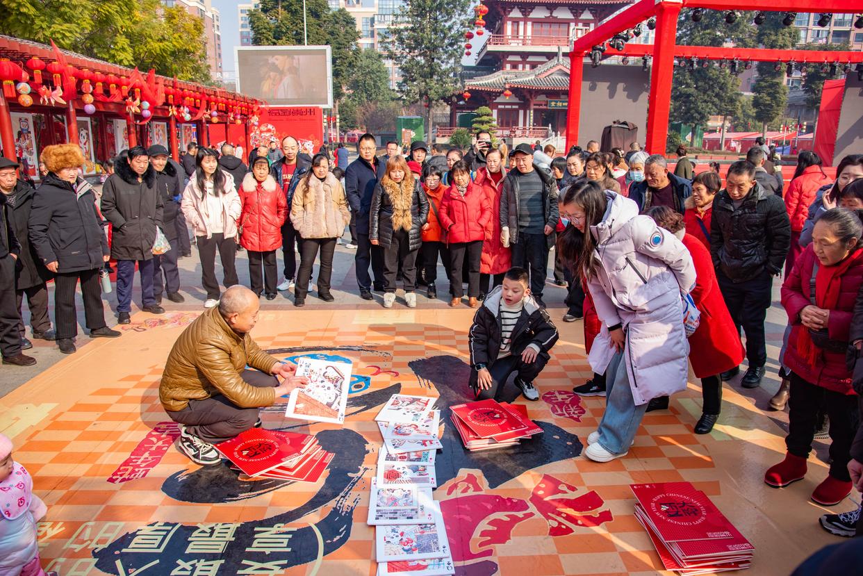 除了集市和年画展,崇州唐风蜀韵景区还精心准备了一系列文艺演出活动。国风快闪小丑互动、文艺晚会非遗火壶秀、人日共庆诗会活动、传统川剧表演等精彩节目轮番上演。